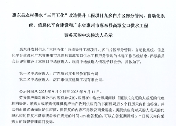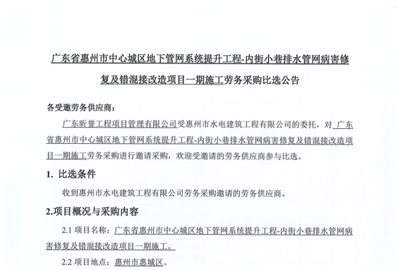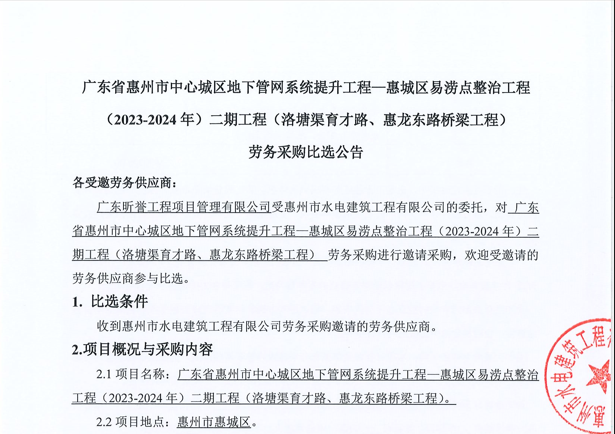 惠州市水電建筑工程有限公司勞務供應商庫擴庫評審結(jié)果公示……